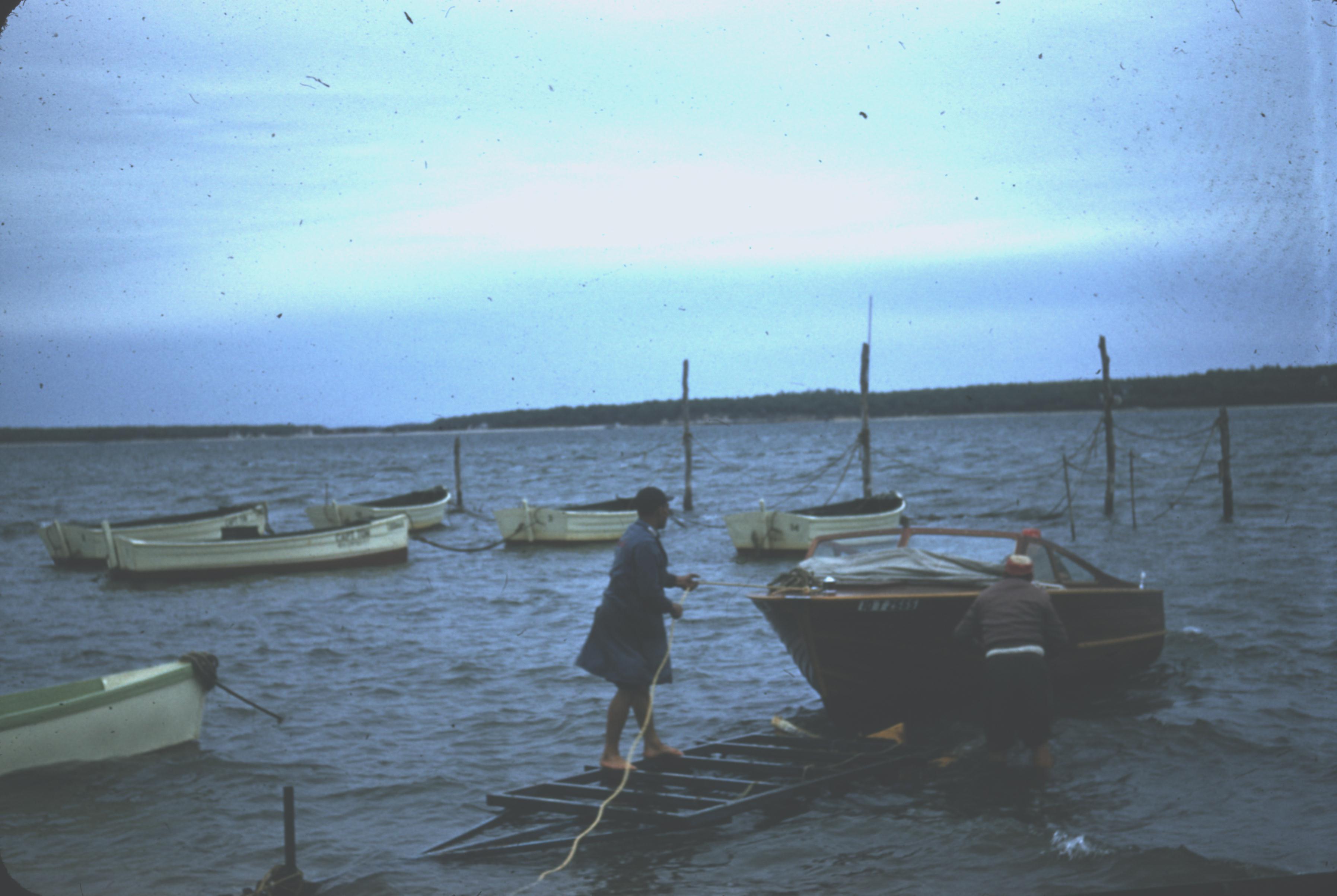 Launching new boat, May 1957